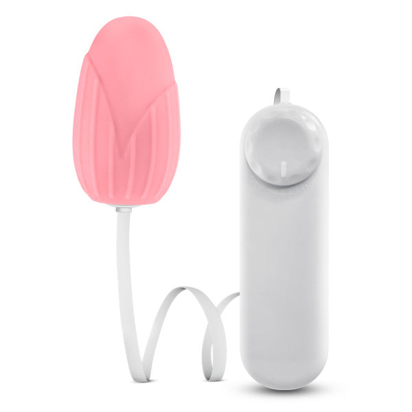 The Luxe Flora delivers adjustable, multi-speed vibrations in an adorable flowerbud shape! The silicone sleeve has a ribbed texture for unique sensations, plus a luxurious satin smooth feel. The twist-dial remote makes moving up and down between speeds easy. Flora's playful look makes it the perfect gift for someone new to sex toys. Flora's body is splashproof for easy cleaning (controller is not splashproof). Made of satin smooth platinum cured silicone and non-porous ABS plastic, it's body safe and phthalate-free. Requires 2 AA batteries (not included).
